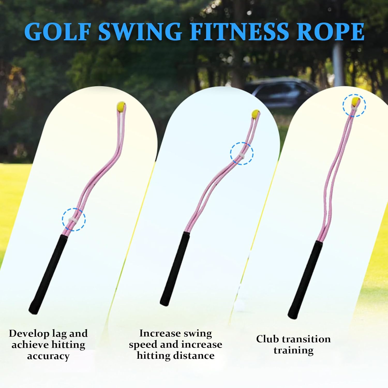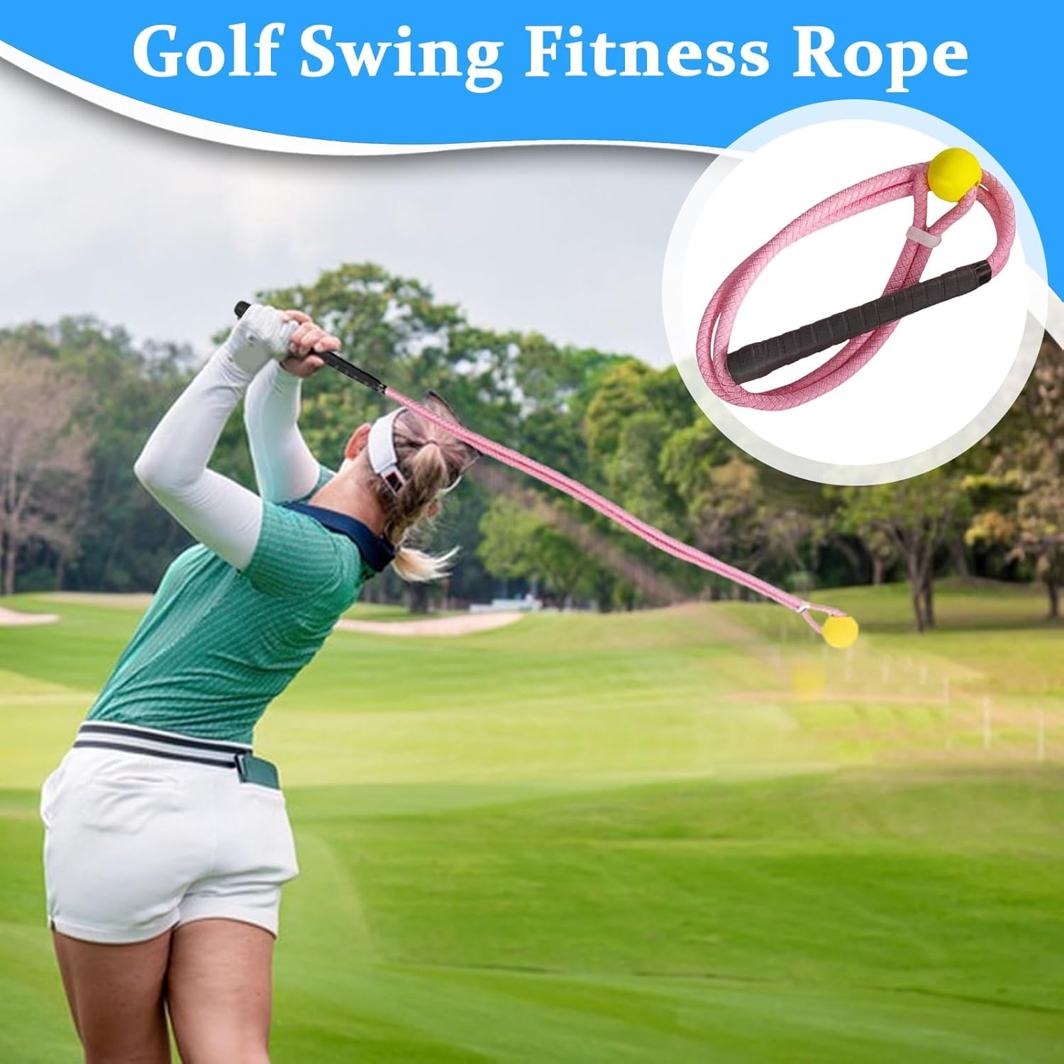 The golf swing trainer aid is a key tool designed to enhance your practice periods and improve your skills effectively. This equipment allows both men and women to refine their swings with consistent use, whether warming up before a game or honing techniques in the backyard, garage, or at the range. Its durable rope construction ensures reliable performance during repeated training periods while remaining portable enough for travel. Ideal for use on the course as well, this versatile golf swing trainer aid supports players of all levels who seek to elevate their game through dedicated practice and preparation.SpecificationProduct name: golf fitness ropeProduct material: PUProduct color: black, pinkApplicable objects: black (unisex), pink (women)Product size: black long about 100cm/39.37 inches, pink long about 93cm/36.61 inchesProduct weight:Black net weight: 219gPink net weight: 180gListGolf rope swing trainer*1Note:Due to different lighting and screen settings, the item color may be slightly different from the picture.Due to different manual measurements, please allow a 1-2cm difference in size.