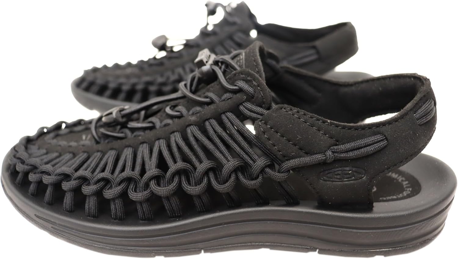 There's unique, and then there's uneek - the new sandal from KEEN. Using innovative two cord construction, KEEN uneek molds to your feet for the perfect fit. The two cords and a simple, free-moving cord junction design allow the upper to move and adapt to the shape of foot. This construction provides freedom of movement while providing security and structure. The lightweight pu midsole delivers durability and comfort while the high traction rubber outsole with razor siping ensures secure footing. Now that's uneek. Two cords and a sole.