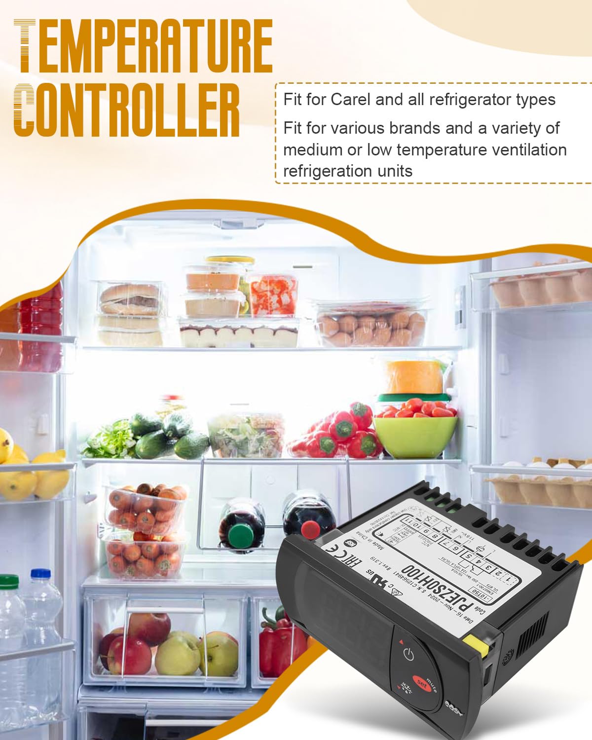 Name: Digital Thermostat Temperature Controller Compatibility: Fit for Carel & All Refrigerator Types Replacement Part Number: PJEZS0H100 Material: Plastic & Copper Voltage: 115 V Control type: Button control Color:Black Package Include: Temperature Controller*1, Yellow Clip Brackets*2, Sensor Probes*2, Installation Hardware*3, Instructions*1