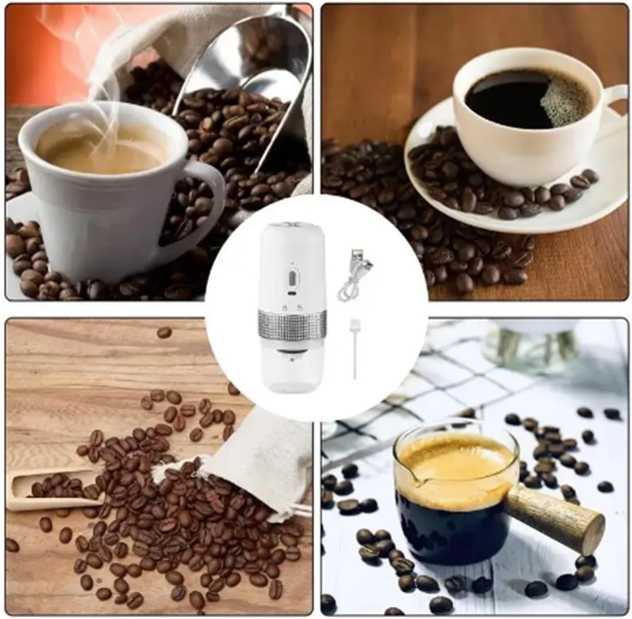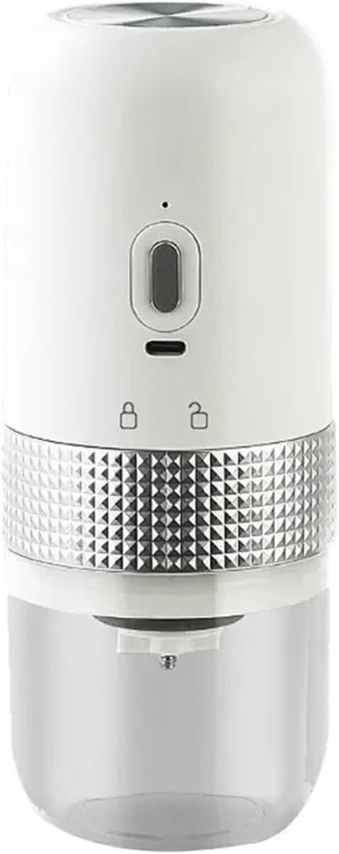 USB CHARGING: Conveniently charge your coffee grinder with a USB cable, making it easy to use and saving your time.Mini Size: This coffee grinder is compact, perfect for a small kitchen or on the go.MULTI-PURPOSE: This coffee grinder can also be used as a spi grinder, adding versatility to your kitchen tools.Power: The power of this coffee grinder ensures consistent, efficient grinding so you can enjoy a perfect cup of coffee every time.Style: Modern and simpleApplicable plas: offi, home, bar, restaurant, outdoor use, leisure bar, cafe, tea houseWeight: 430 gSize: 9cm*8cm*21cmfeature:1. Simple and compact. It is small and compact, can be held in one hand, and is very convenient for work and travel.2. The particles are uniform. The ground particles are very uniform and the grinding effect is good.3. Detachable and washable: rotating lock, separate design, easy to disassemble and clean.4. Automatic power off. When the grinding work is completed, the grinder automatically powers off.5. Easy operation: one-button start, easy operation, automatic stop by resistan sensing.Noti:Do not put the product into water to wash, please wipe it with a wet towel.